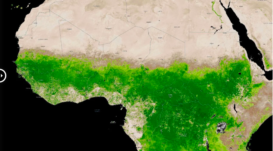Citra satelit dari satelit MODIS NASA menggambarkan luasan vegetasi (warna hijau) di Afrika pada 12 September 2024. (source: CNN Weather / NASA)